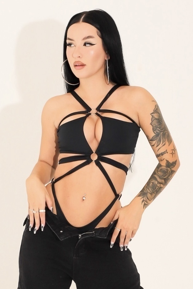 Body cheio de recortes e argolas de metal prata, é daqueles de PARAR TUDO por onde você passar! Tecido duplo no peito, sustenta suuper bem e modela o corpo.