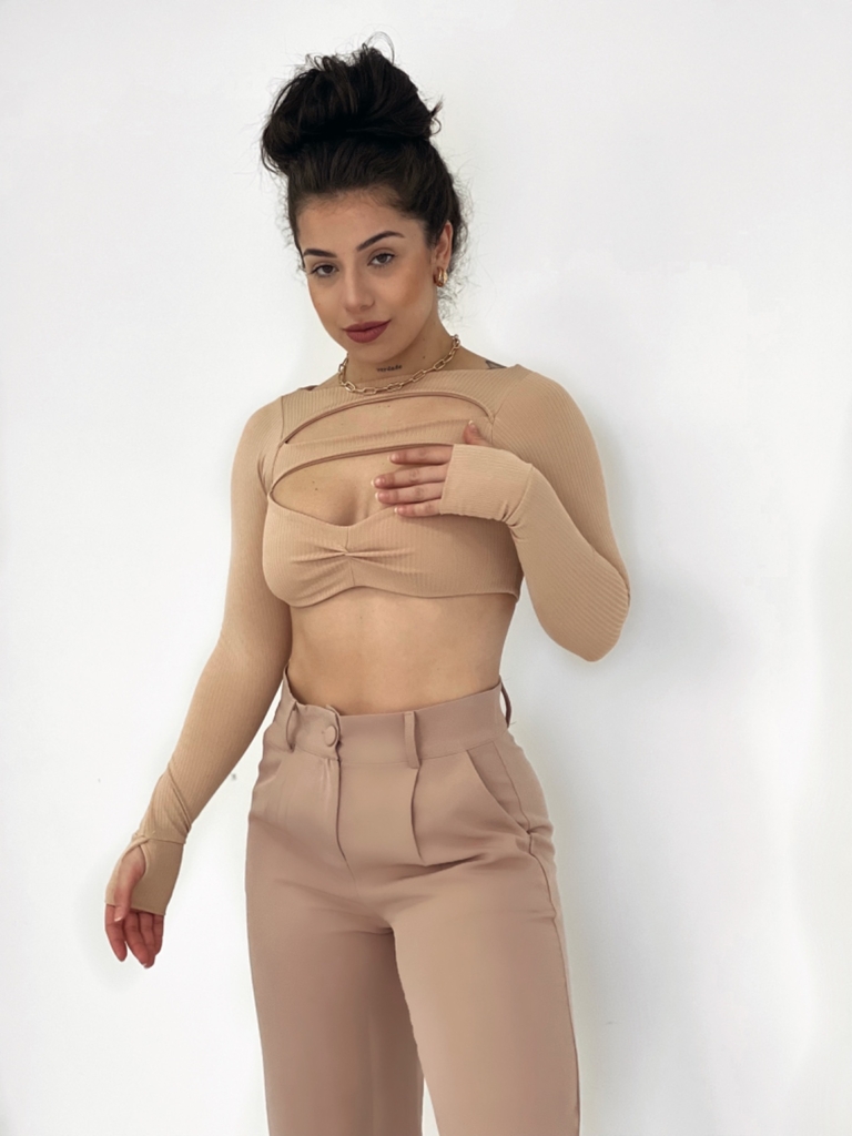 Cropped com recorte no decote, manga longa e suporte para o dedo, versátil e estiloso! O tecido é super grossinho e a qualidade é surreal, você não vai querer tirar do corpo! TAMANHO UNICO